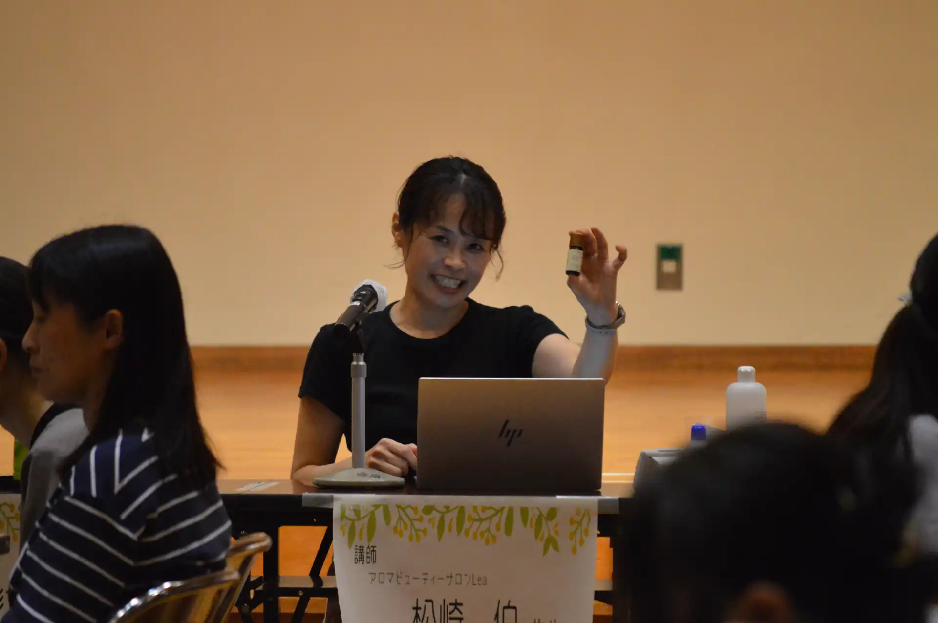 7月30日(水)、松崎伯先生をお招きして、女性部主催「レディースセミナー」を開催しました。 松崎先生には、「『気分を彩るアロマの香りでリラックス』~自分だけのアロマオイル作り」という演題のもと、気分や体調に合った香りの選び方や、オリジナルのアロマオイル作りをご紹介いただきました。 アロマの香りに包まれて、心も体もリラックスできるひとときとなりました。